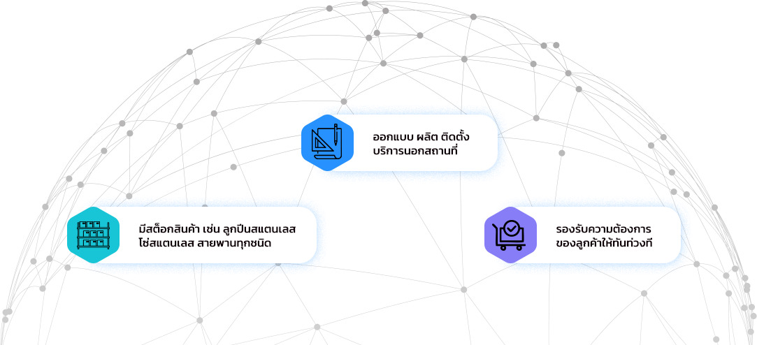 โดยเป้าหมาย ยึดถือบริการ ออกแบบ ผลิต ติดตั้ง บริการนอก สถานที่ เรามีสต็อกสินค้า เช่น ลูกปีนสแตนเลส โซ่สแตนเลส สายพานทุกชนิด รองรับความต้องการของลูกค้าให้ทันท่วงที