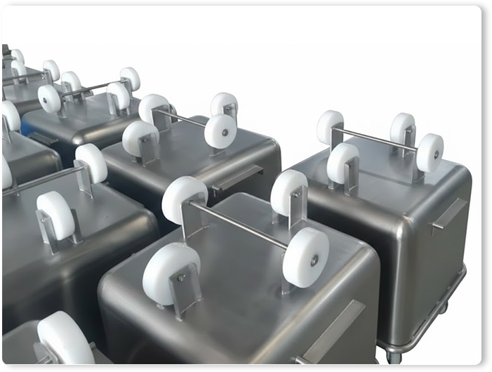 - ถังใส่เนื้อ 200L Stainless Steel Euro Bins / 200L Bin Hoist