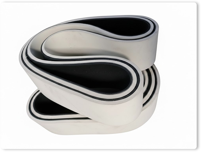 - เนื้อสายพาน (Body): Polyurethane (PU) มีทั้งแบบหล่อ (Cast) และแบบรีด (Extruded) ทนความร้อน-เย็นได้ดี (ประมาณ -30°C ถึง +80°C)