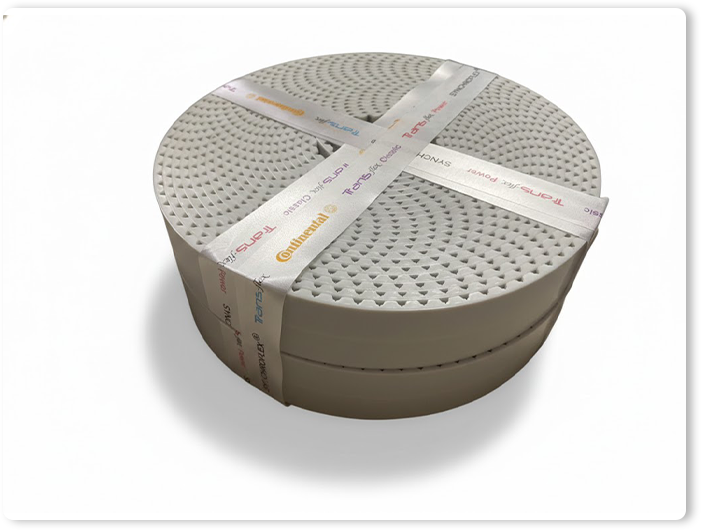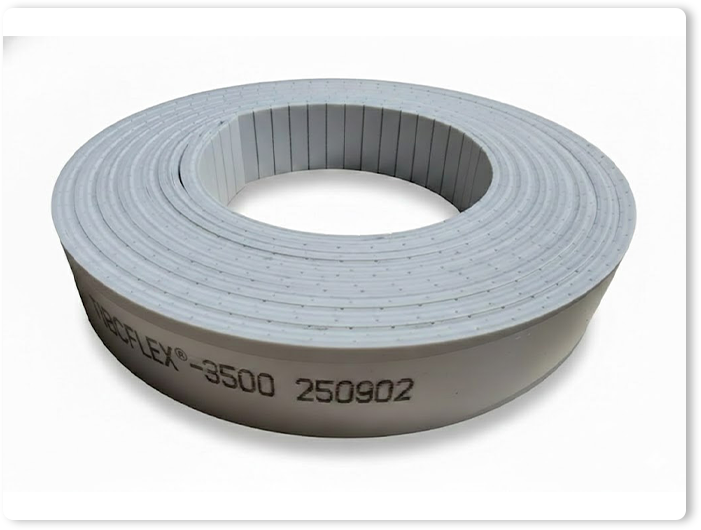 • เนื้อสายพาน (Body): Polyurethane (PU) มีทั้งแบบหล่อ (Cast) และแบบรีด (Extruded) ทนความร้อน-เย็นได้ดี (ประมาณ -30°C ถึง +80°C)
