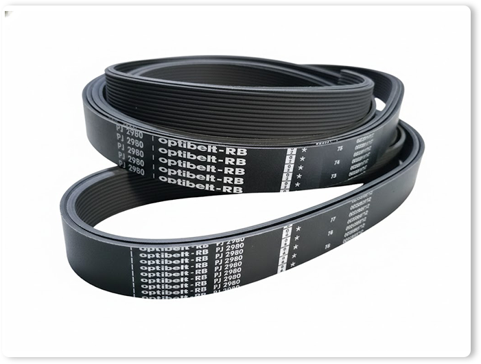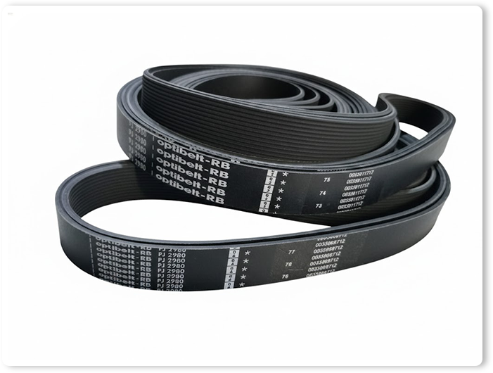 - เส้นใยเสริมความแข็งแรง (Tension Cord): ฝังอยู่ภายใน ทำจากเส้นใยไฟเบอร์กลาส (Fiberglass) หรือเคฟล่าร์ (Aramid) เพื่อคงรูปทรงและป้องกันสายพานยืดตัว