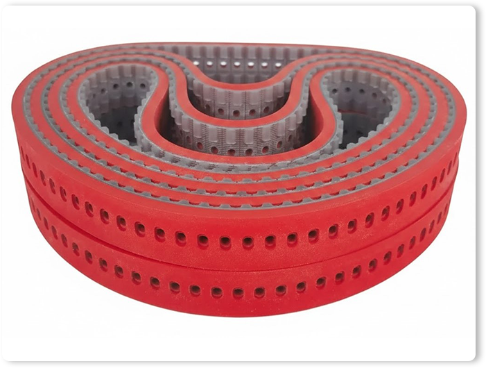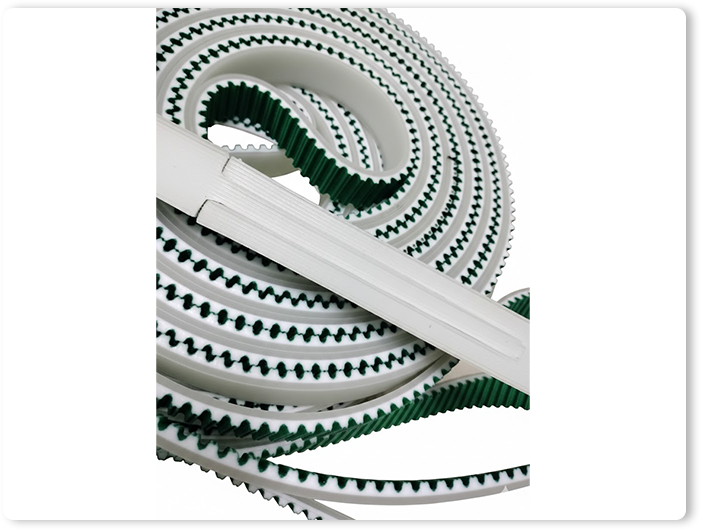 การนำ สายพานไทม์มิ่ง สายพาน Flatbelt สายพาน PU PV สายพานต่างๆ มาติดยาง ติดไกด์ ติดโปรไฟล์ มีหลากหลายรูปแบบ เช่น ติดยางผิวหยาบเพื่อเพิ่มการยึดเกาะ เช่น ยางสีแดง/สีดำ , ติดฟองน้ำ (Sponge) สำหรับงานรองรับแรงกระแทก, และติดไกด์ Side Wall เพื่อป้องกันการตกหล่น เหมาะกับงานเฉพาะทางเช่น อุตสาหกรรมอาหาร, แก้ว, แพ็คกิ้ง, โดยมีวัสดุให้เลือกทั้ง PVC, PU, Teflon, Silicone ที่ปรับปรุงผิวหน้าให้เหมาะกับการใช้งานที่ต้องการความทนทานต่อความร้อน, สารเคมี หรือไฟฟ้าสถิต